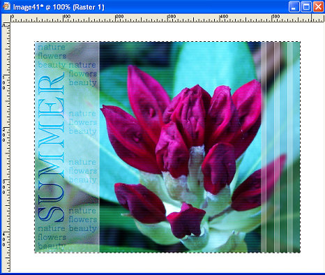 - Activate the top layer - Promoted Selection with the right part of the image. You can either load my selections ('summer_flower_tag_selection_1'), or use the rectangle selection tool to draw 3 rectangles to the right as show in the screen shot below.