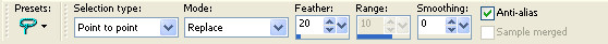 - As you can see above, there is a fairly distinct edge between the background and image on the left side. The masked layer will take care of most of this, but not all of it. You could play around with the masked gradient if you like, or you can do what I did. Click on the 'Selection Tool'. Use these settings: